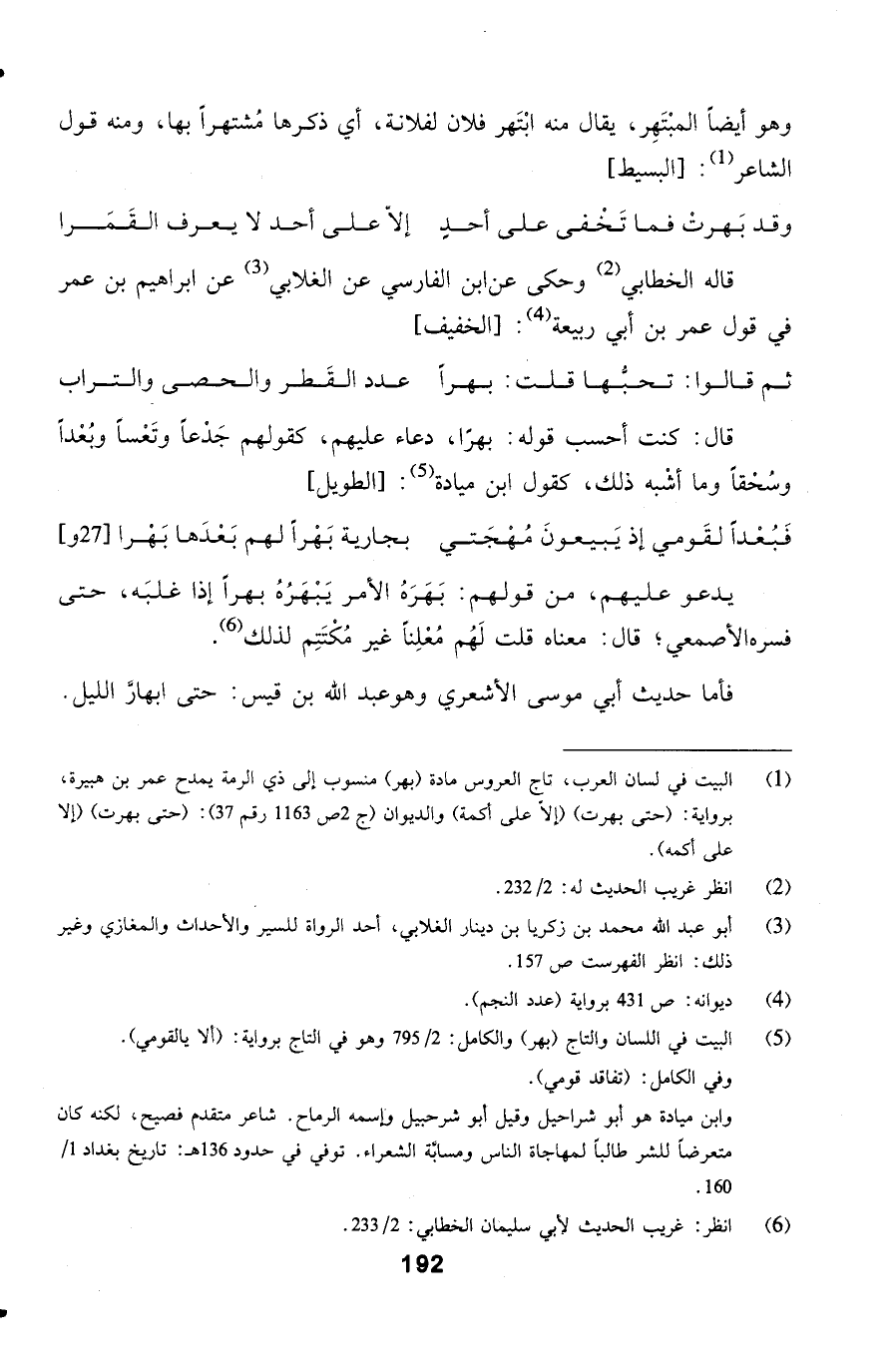 مُعْلِناً غير مُكْتَتِم لذلك فأما حديث أبي موسى الأشعري وهوعبد الله بن قيس: حتى ابهارَّ الليل.