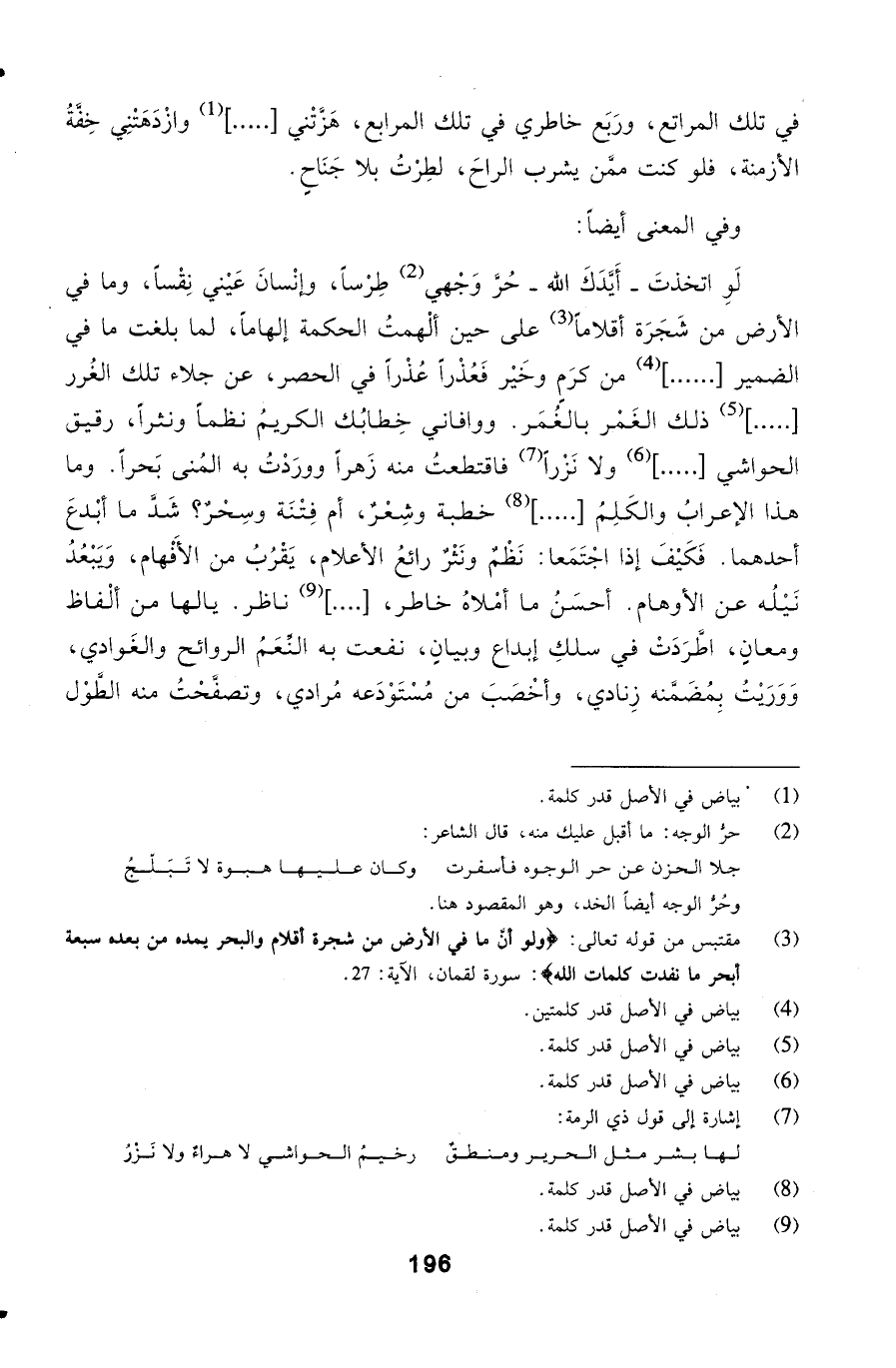 وورَدْتُ به المُنى بَحراً. وما هذا الإعرابُ والكَلِمُ خطبة وشِعْرٌ، أم فِتْنَة وسِحْرٌ؟ شَدَّ ما أبْدعَ أحدهما.