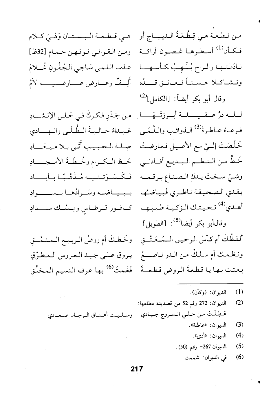من قطعة هي قِطْعَةُ الديباج أو ... هي قطعة البستان وَهْيَ كلام