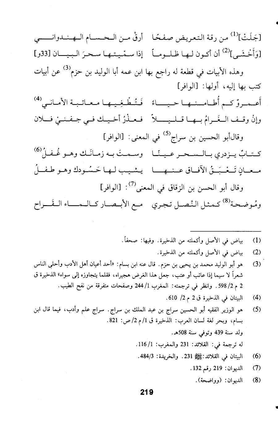 وهذه الأبيات في قطعة له راجع بها ابن عمه أبا الوليد بن حزم عن أبيات كتب بها إليه، أولها:
