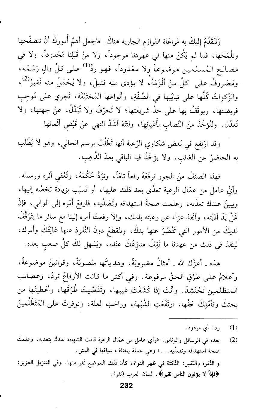 ولا في مصالح المُسلمين موضوعاً ولا معْدوداً، فهو ردٌّ على كلِّ والٍ رَسَمَه، ومَصْروفٌ على كلِّ منْ