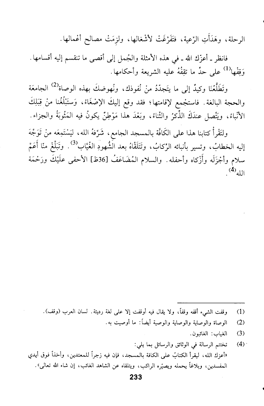 وتَطَلُّعُنَا وكيدٌ إلى ما يتَجدّدُ منْ نُفوذك، ونُهوضكَ بهذه الوصاة الجامعَة والحجة البالغة. فاستجْمع