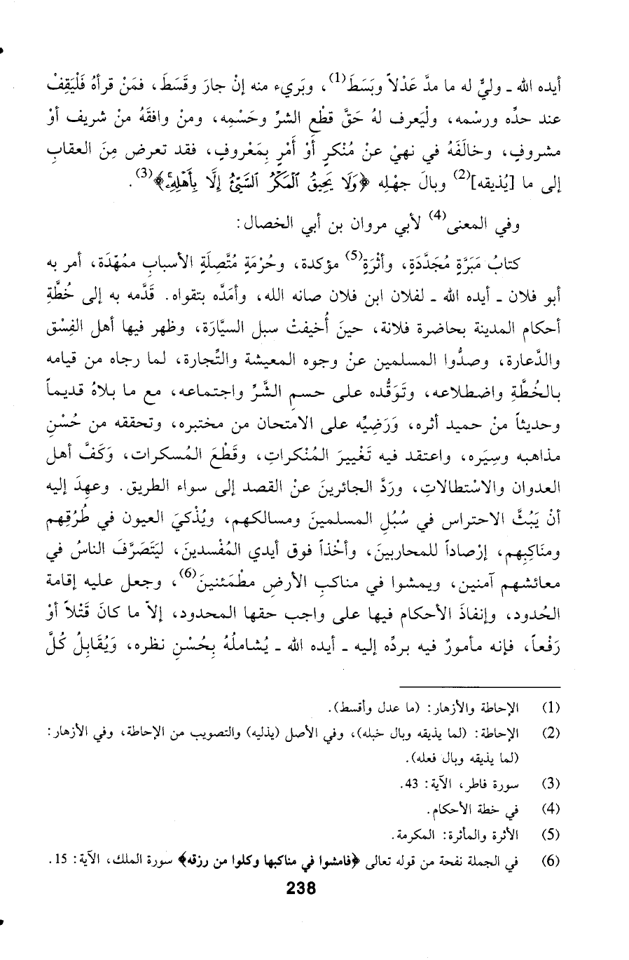 ومنَاكِبِهم، إرْصاداً للمحاربينَ، وأخْذاً فوق أيدي المُفْسدينَ، ليَتَصَرَّفَ الناسُ في معائشهم آمنين،