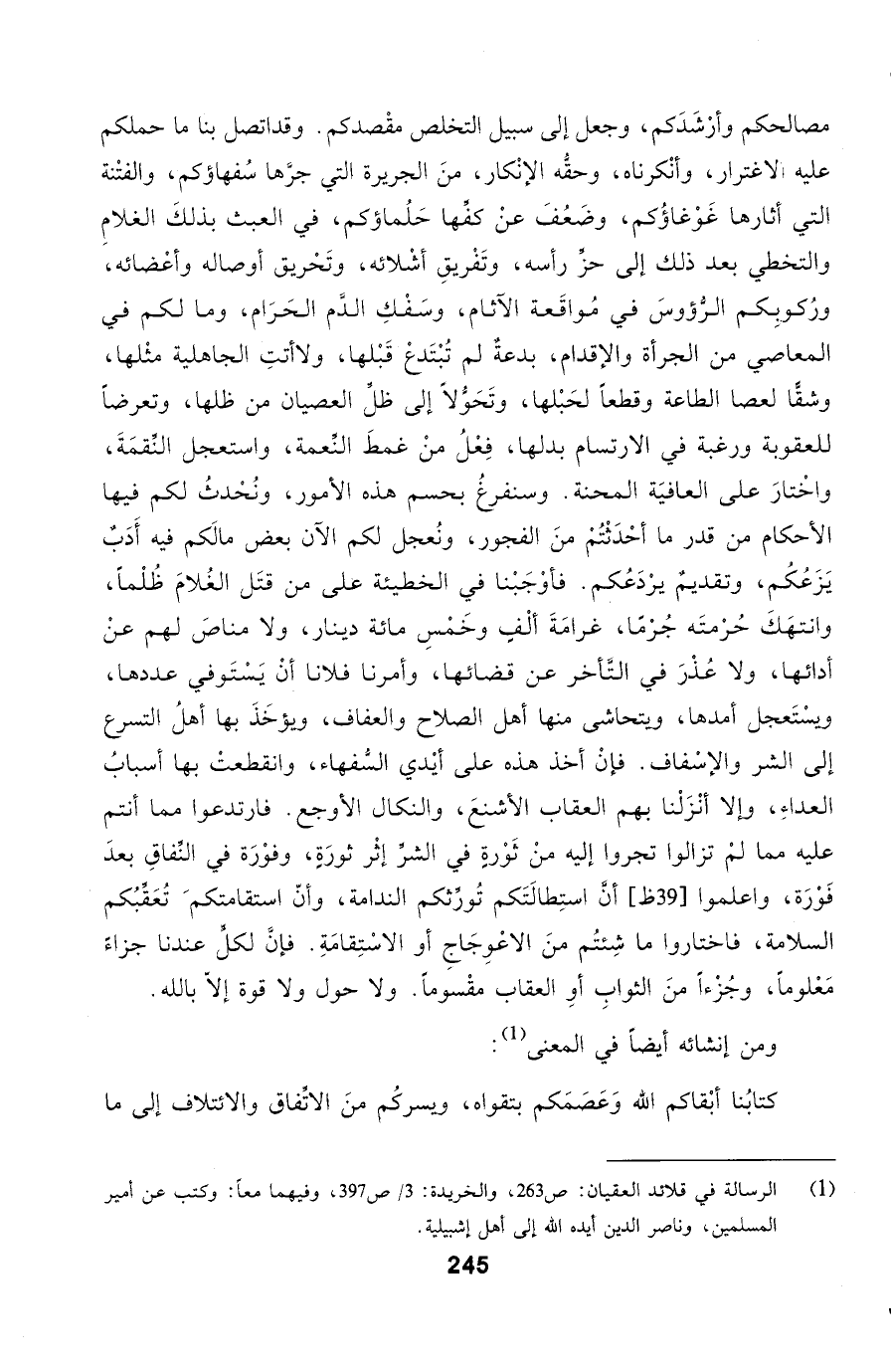 كتابُنا أبْقاكم الله وَعَصَمَكم بتقواه، ويسركُم منَ الاتِّفاق والائتلاف إلى ما