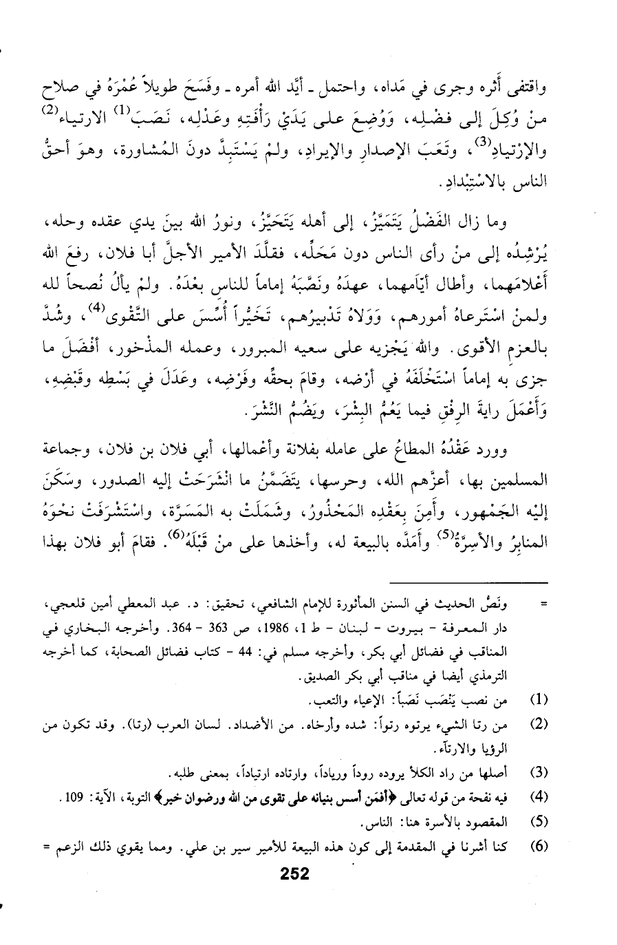 وتَعَبَ الإصدارِ والإيرادِ، ولمْ يَسْتَبِدَّ دونَ المُشاورة، وهوَ أحقُّ الناس بالاسْتِبْدادِ.