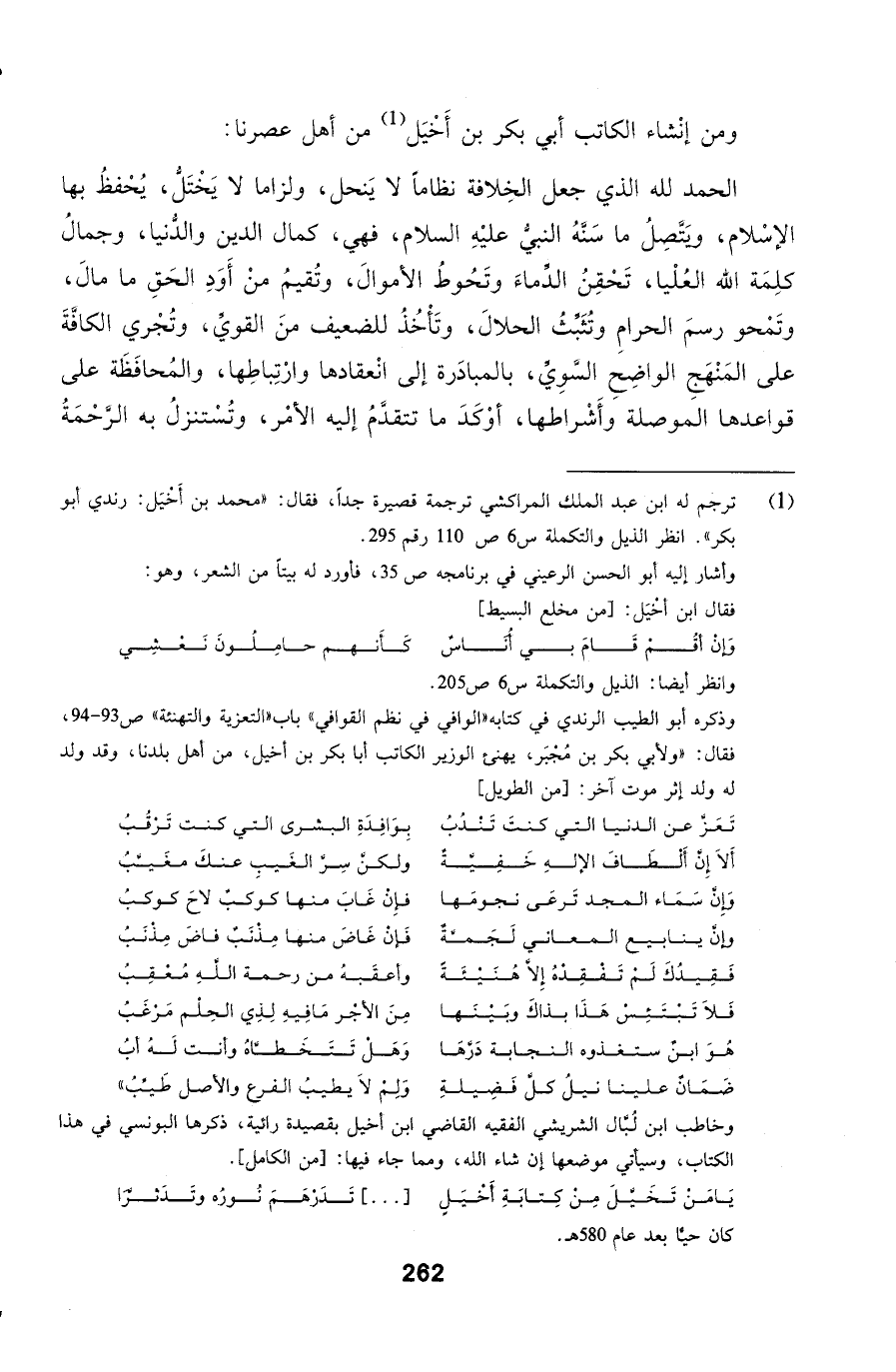 ومن إنْشاء الكاتب أبي بكر بن أَخْيَل من أهل عصرنا: