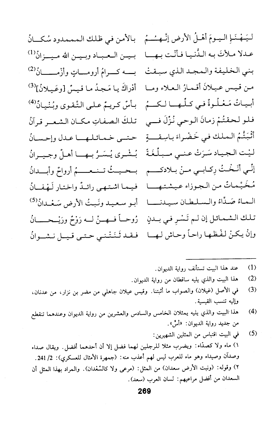 ليَهْنَإِ اليومَ أهْلُ الأرض إنَّهُمُ ... بالأمن في ظلك المممدود سُكانُ