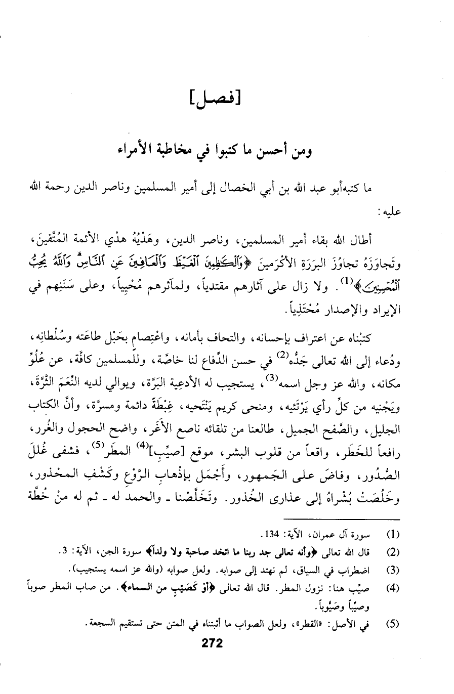 فصل ومن أحسن ما كتبوا في مخاطبة الأمراء