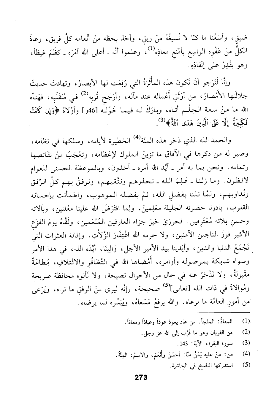 ووأوْلاهُ (وَإِنْ كَانَتْ لَكَبِيرَةً إِلَّا عَلَى الَّذِينَ هَدَى اللَّهُ) والحمد لله الذي ذخر هذه المنَّة الخطيرة لأيامه، وسلكها في نظامه، وصير له من ذكرها