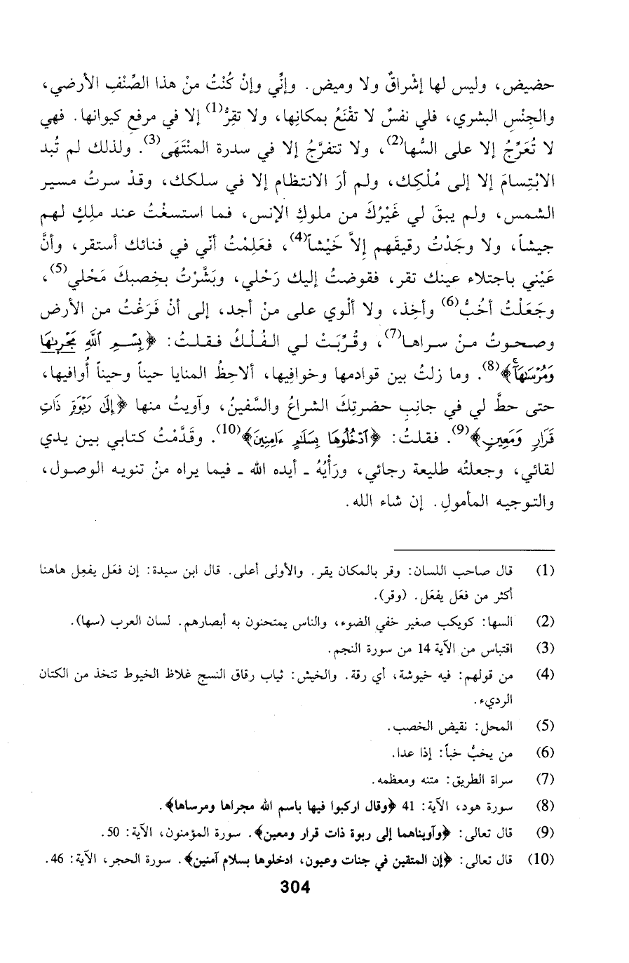 حضرتِكَ الشراعُ والسَّفينُ، وآويتُ منها (إِلَى رَبْوَةٍ ذَاتِ قَرَارٍ وَمَعِينٍ) فقلت (ادْخُلُوهَا بِسَلَامٍ آمِنِينَ) وقَدَّمْتُ كتابي بين يدي لقائي، وجعلتُه طليعة رجائي،