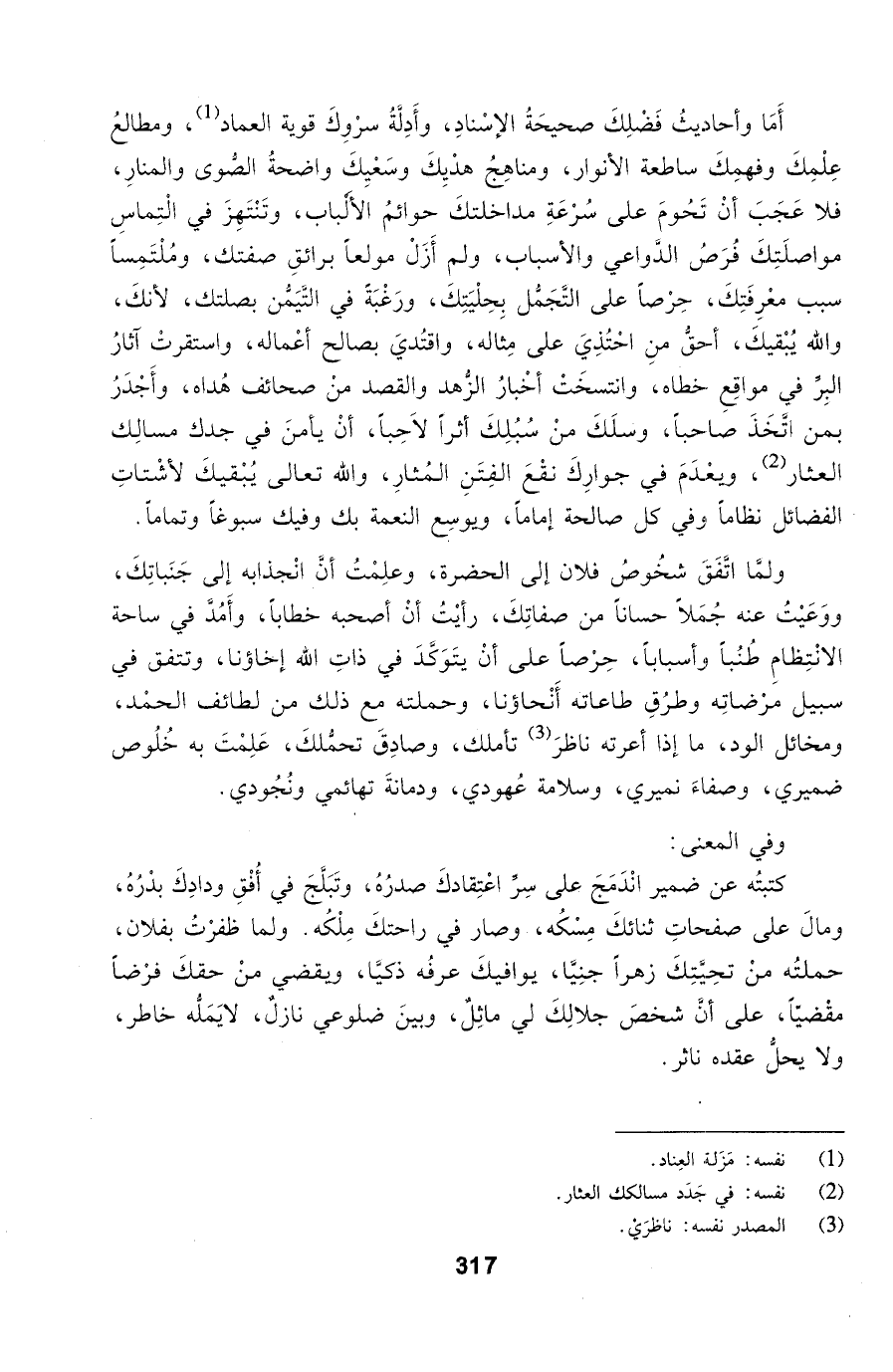 كتبتُه عن ضمير انْدَمَجَ على سِرِّ اعْتِقادكَ صدرُهُ، وتَبَلَّجَ في أُفْقِ ودادِكَ بدْرُهُ، ومالَ على صفحاتِ