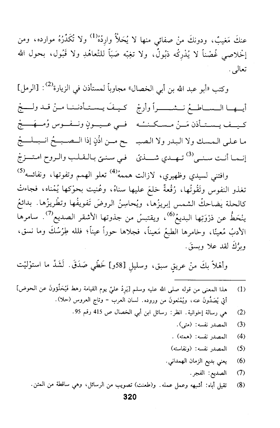 وافتني لسيدي وظهيري، لازالت هممهُ تعلو الهمم وتفوتها، ونفائسه تغذو النفوس وتَقُوتُها، رُقْعةٌ خلعَ