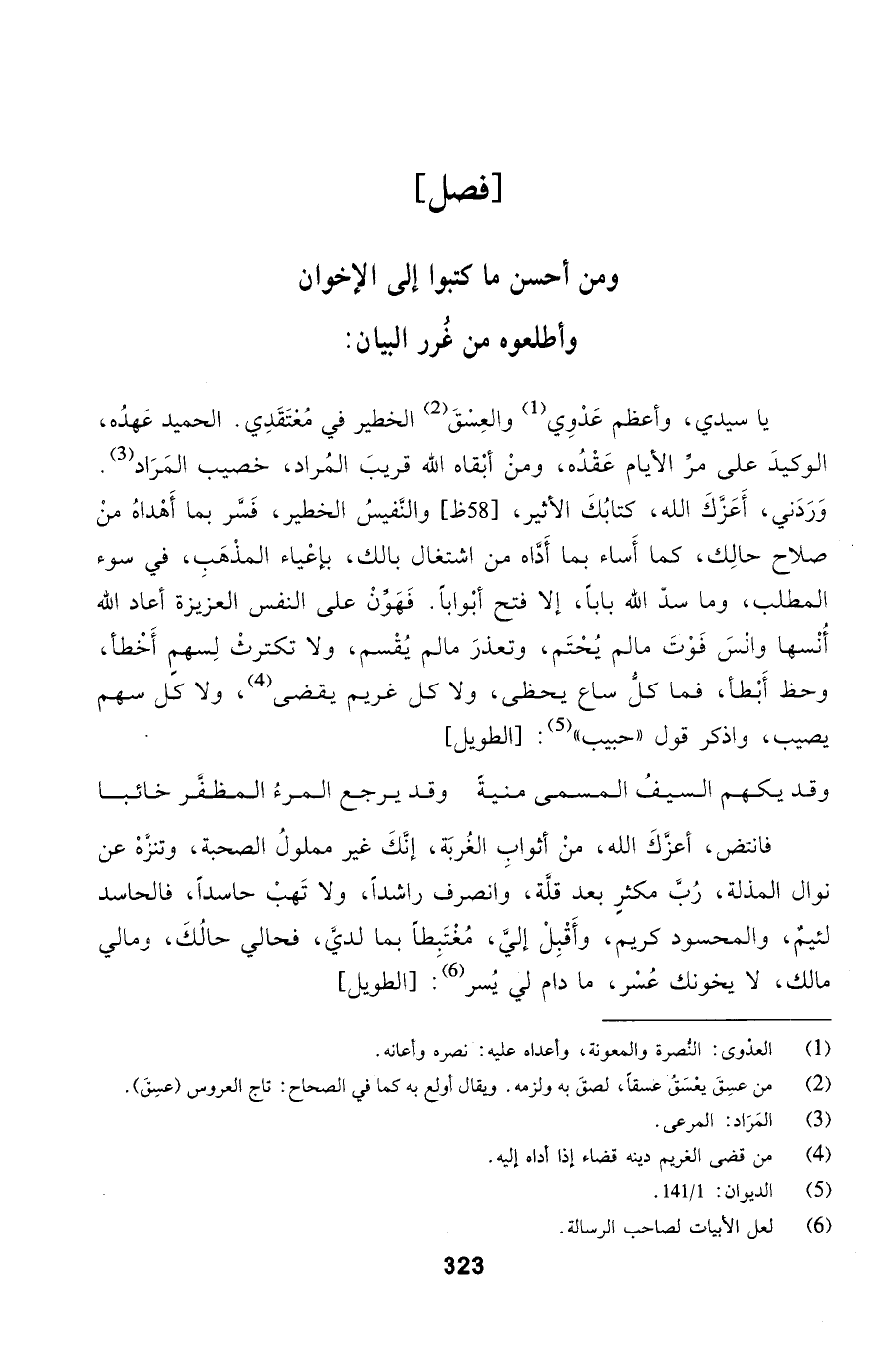 فصل ومن أحسن ما كتبوا إلى الإخوان وأطلعوه من غُرر البيان