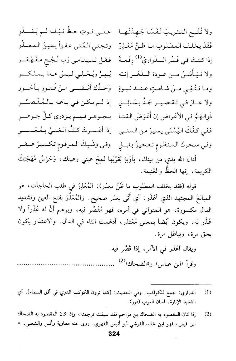 فَقَدْ يخلف المطلوب ما ظنَّ مُعْذِرٌ ... وتجني المُنى عفواً يمينُ المعذِّر