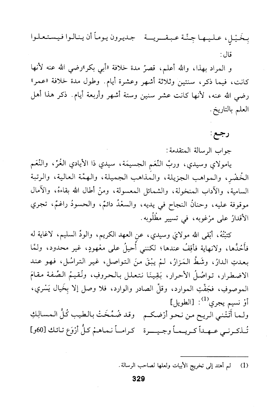 كتبْتُهُ، أبْقى الله مولايَ وسيدي، عنِ العهد الكريم، والودِّ السليم، لاغاية له فأَحُدُّها، ولانهاية فأقِفُ