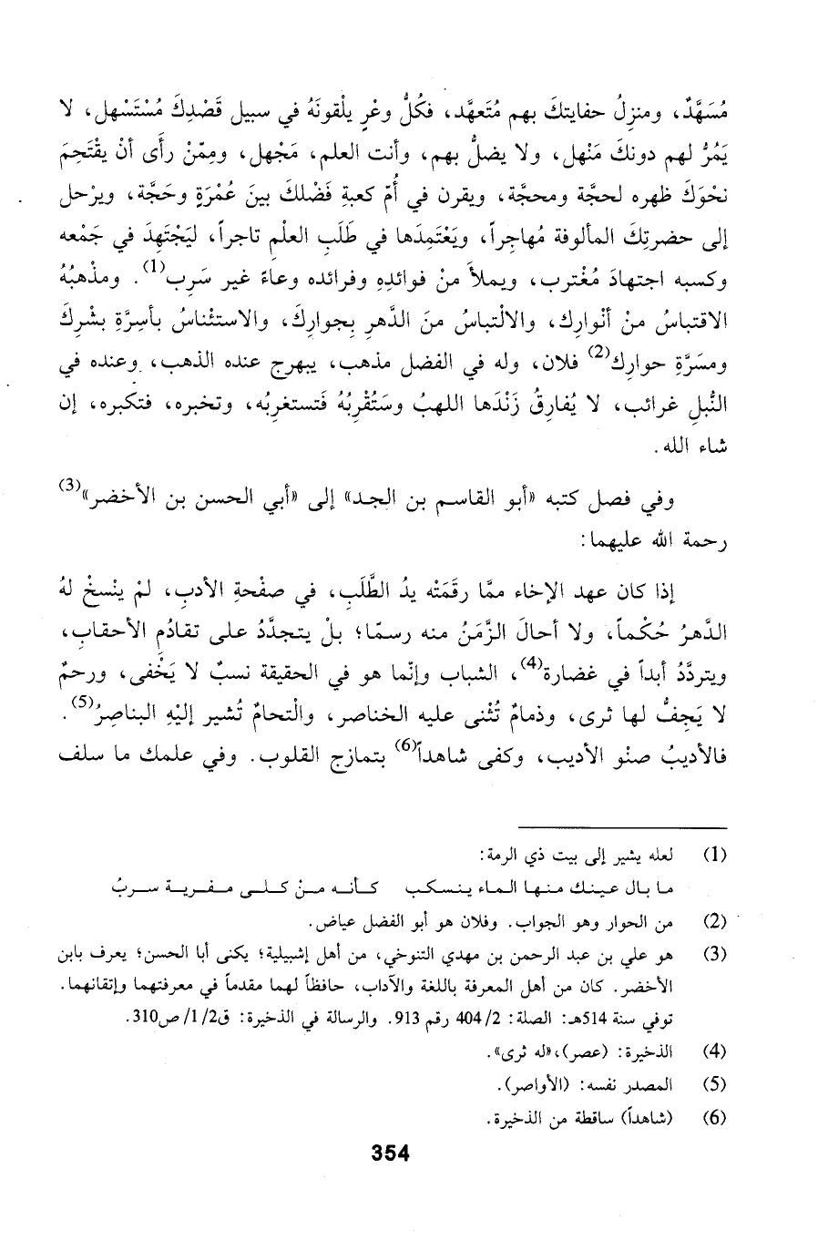 ويرْحل إلى حضرتِكَ المألوفة مُهاجِراً، ويَعْتَمِدَها في طَلَبِ العلْمِ تاجراً، ليَجْتَهِدَ في جَمْعه وكسبه