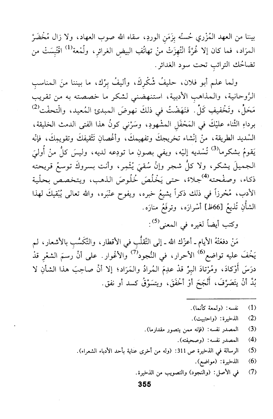 ولما علم أبو فلان، حليفُ شُكْرِكَ، وأليفُ بِرِّك، ما بيننا منَ المناسبِ الرُّوحانية، والمذاهبِ الأدبية،