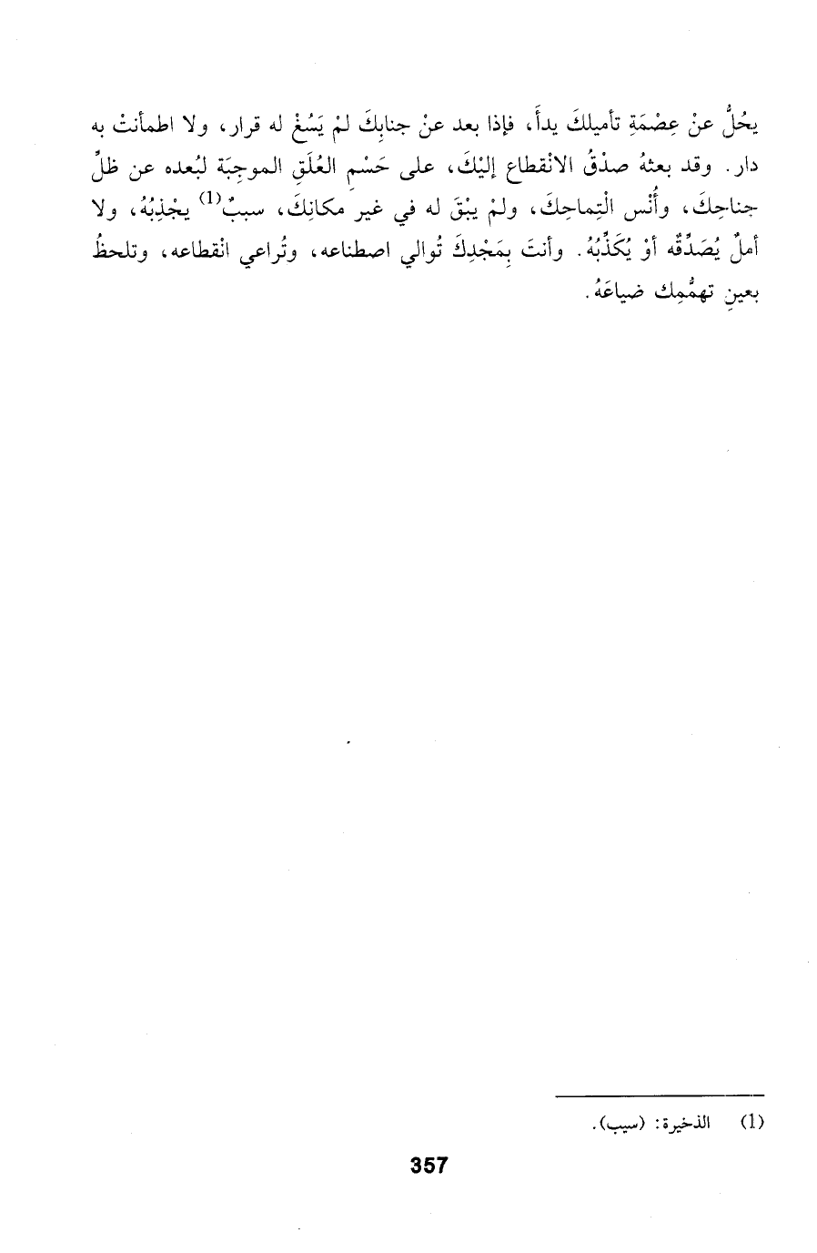 يحُلُّ عنْ عِصْمَةِ تأميلكَ يدأَ، فإذا بعد عنْ جنابِكَ لمْ يَسُغْ له قرار، ولا اطمأنتْ به دار. وقد بعثهُ صدْقُ الانْقطاع إليْكَ، على حَسْمِ