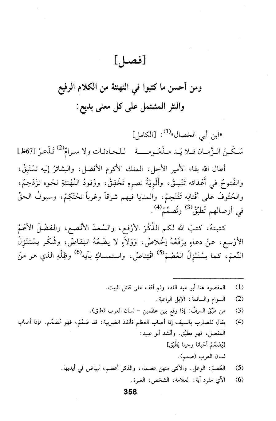 فصل ومن أحسن ما كتبوا في التهنئة من الكلام الرفيع والنثر المشتمل على كل معنى بديع: