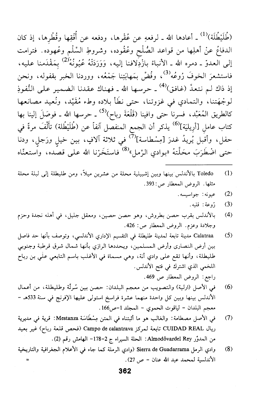 بلاده وطء مُقَيَّد، ونُعيد مصانعها كالطريق المُعَبَّد، فسرنا حتى وافينا (قَلْعَةَ رباح) - حرسها الله -