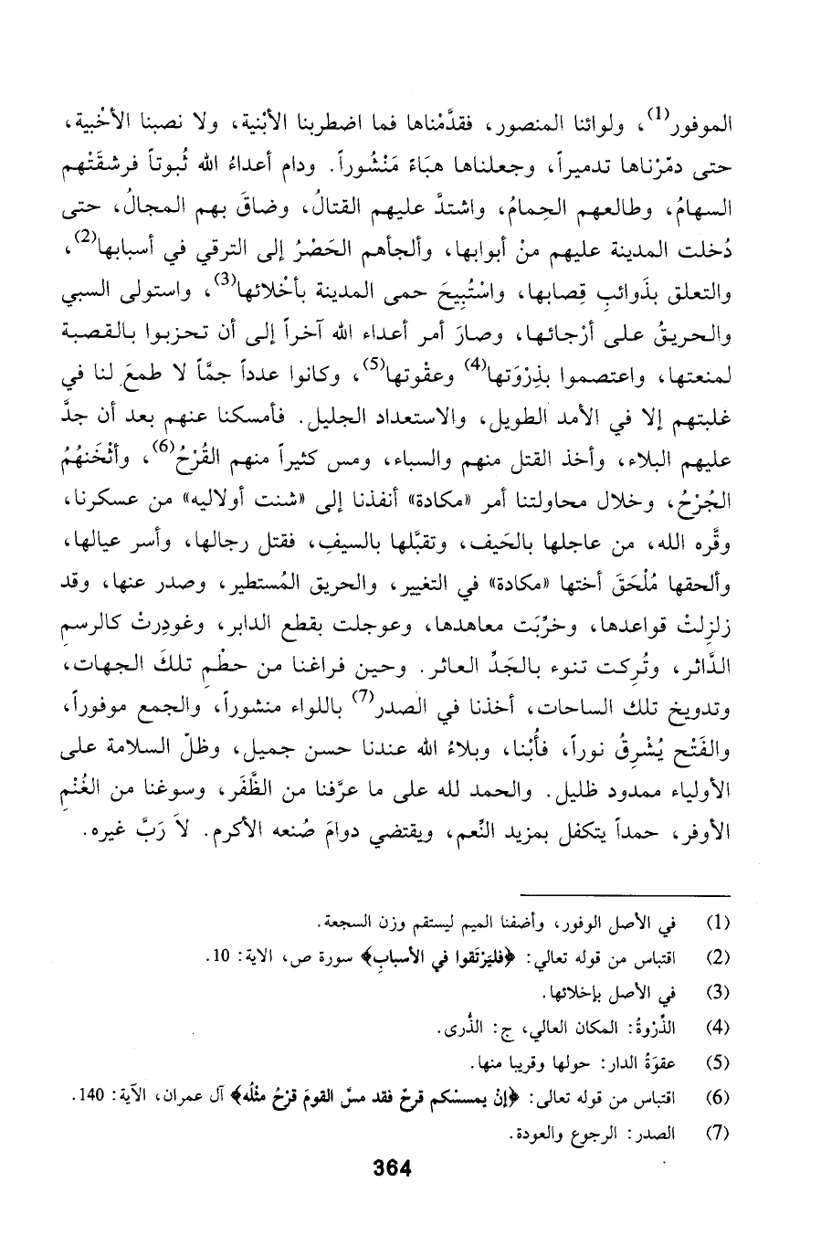 الساحات، أخذنا في الصدر باللواء منشوراً، والجمع موفوراً، والفَتْح يُشْرِقُ نوراً، فأُبْنا، وبلاءُ الله