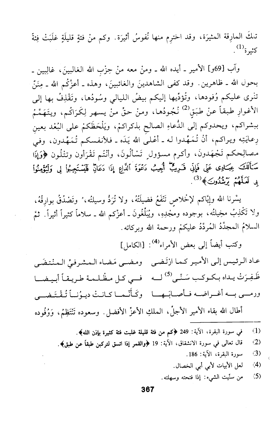 وآب الأمير - أيده الله - ومنْ معه منْ حِزْبِ الله الغالبينَ، غالِبين - بحول الله - ظاهرين. وقد