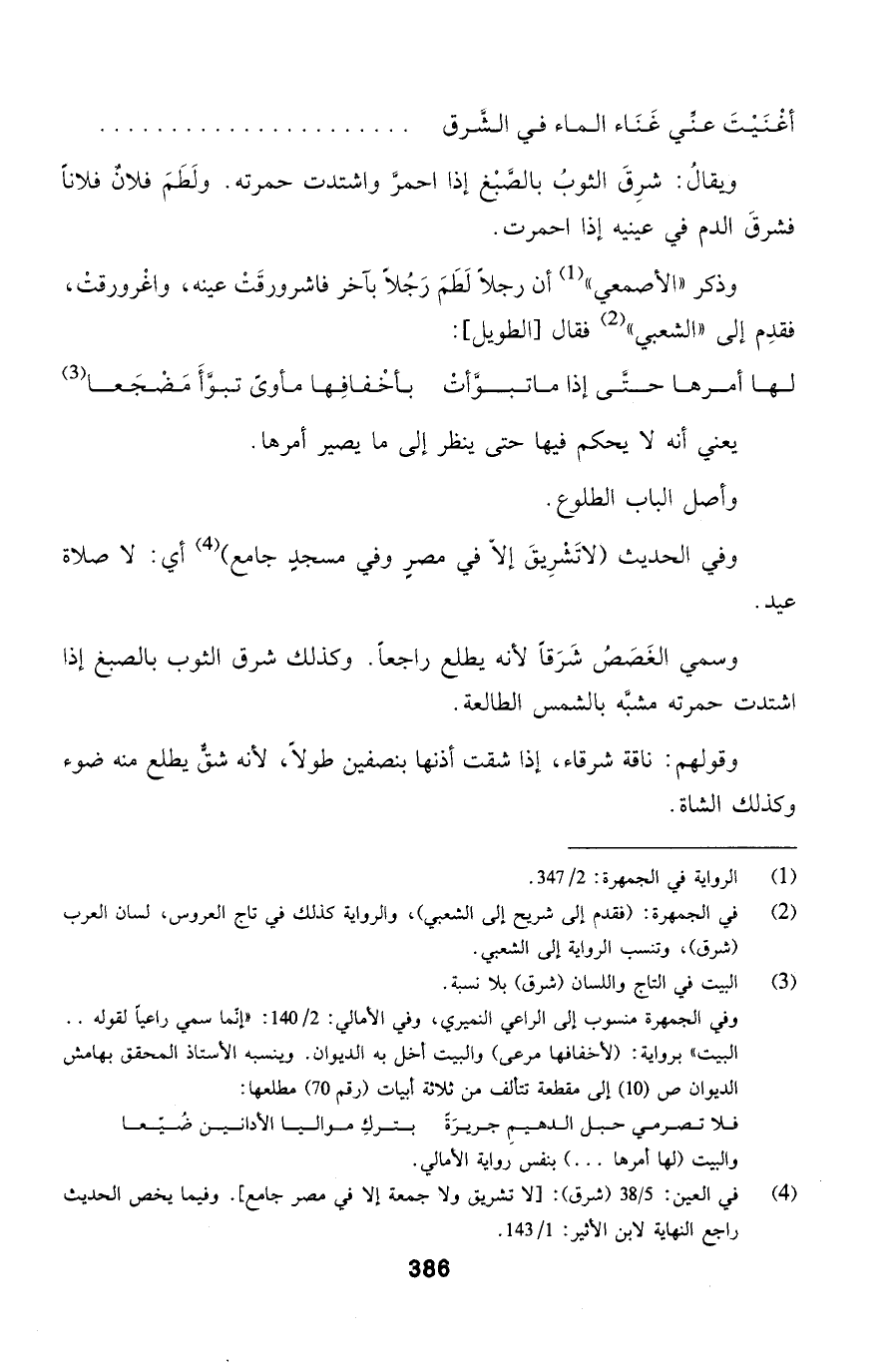 وقولهم: ناقة شرقاء، إذا شقت أذنها بنصفين طولاً، لأنه شقٌّ يطلع منه ضوء وكذلك الشاة.