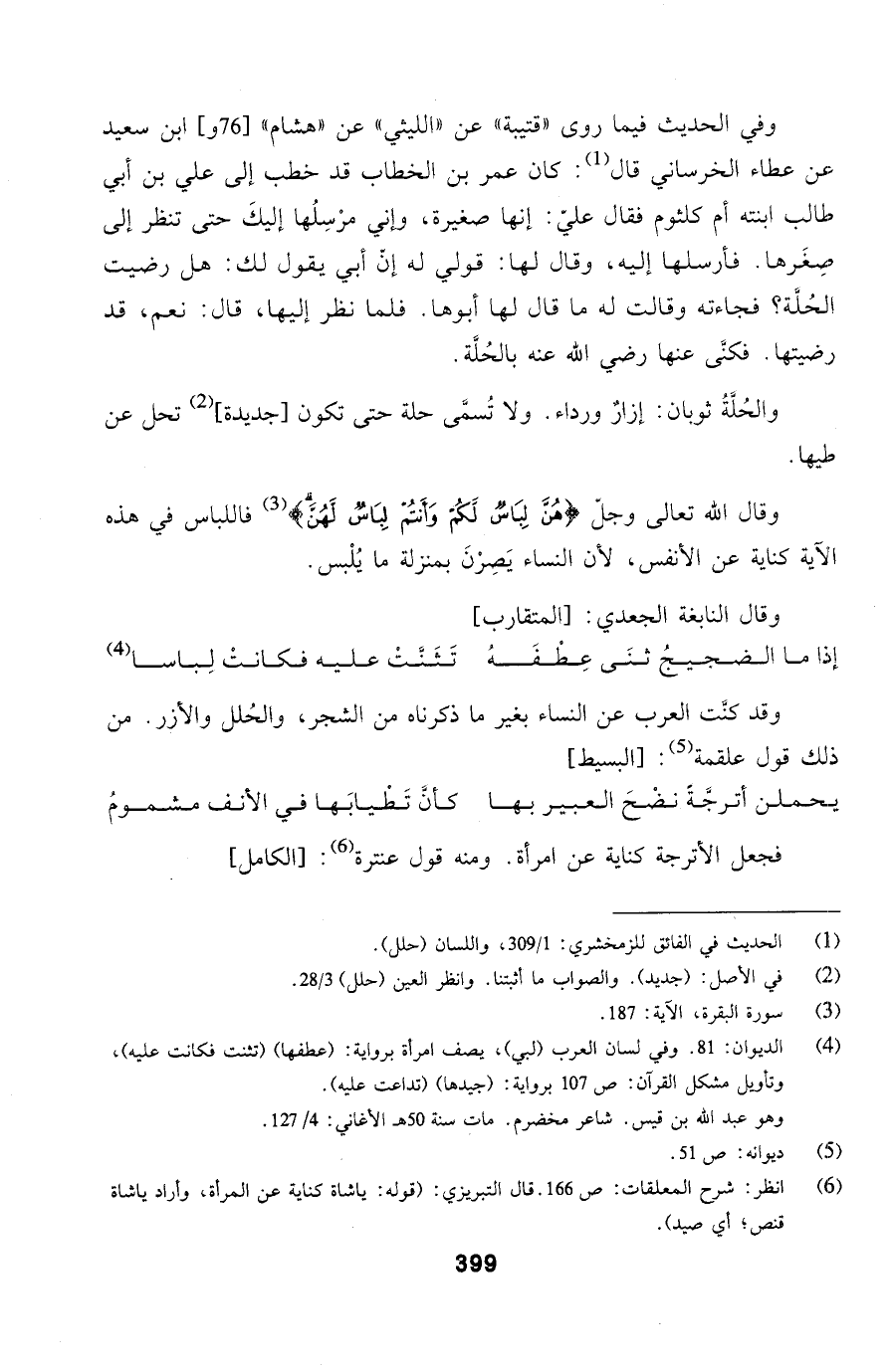 وقال الله تعالى وجلّ (هُنَّ لِبَاسٌ لَكُمْ وَأَنْتُمْ لِبَاسٌ لَهُنَّ) فاللباس في هذه الآية كناية عن الأنفس، لأن النساء يَصِرْنَ بمنزلة ما يُلْبس.