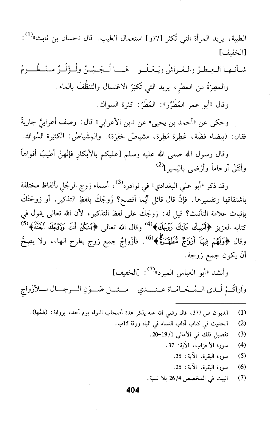 لفظ التذكير، لأن الله تعالى يقول في كتابه العزيز (أَمْسِكْ عَلَيْكَ زَوْجَكَ) وقال الله تعالى (اسْكُنْ أَنْتَ وَزَوْجُكَ الْجَنَّةَ) وقال (وَلَهُمْ فِيهَا أَزْوَاجٌ مُطَهَّرَةٌ). فأزْواجٌ جمع زوج