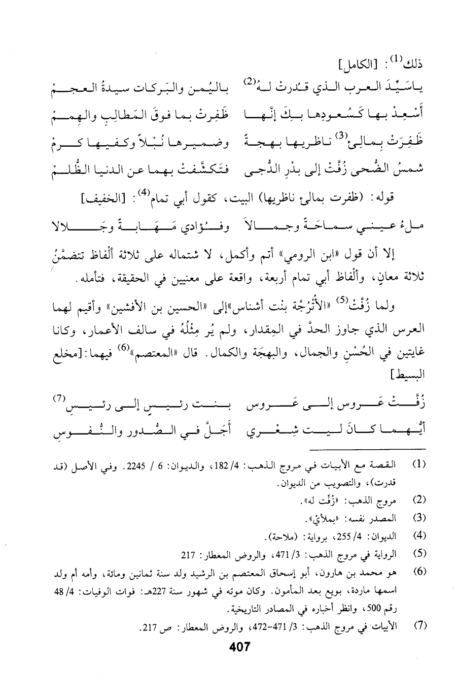 ولما زُفَّتْ الأُتْرُجَّة بنت أشناس إلى الحسين بن الأفشين وأقيم لهما العرس الذي جاوز الحدَّ في