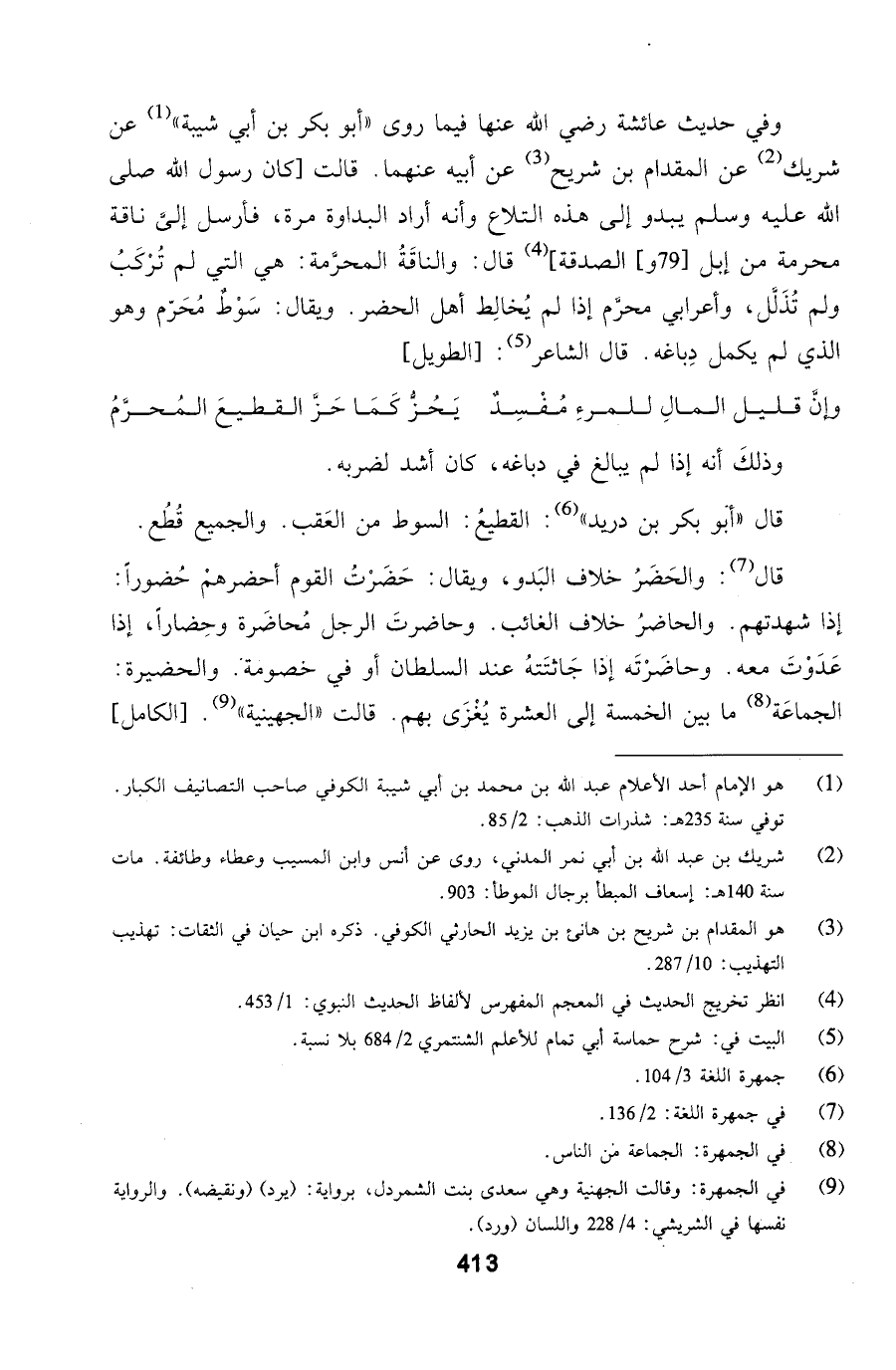 وفي حديث عائشة رضي الله عنها فيما روى أبو بكر بن أبي شيبة عن شريك عن المقدام بن شريح