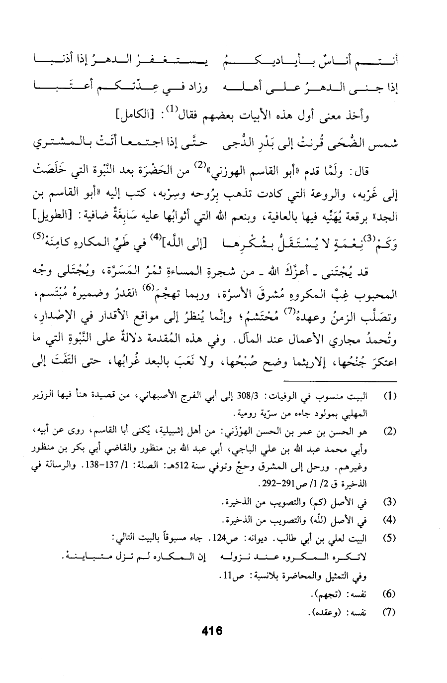 قال: ولَمَّا قدم أبو القاسم الهوزني من الحَضْرَة بعد النَّبْوة التي خَلَصَتْ إلى غَرْبه، والروعة التي