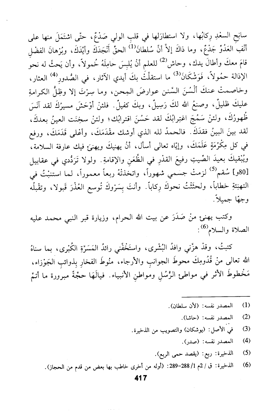 وكتب يهنئ منْ صَدَرَ عن بيت الله الحرام، وزيارة قبر النبي محمد عليه الصلاة والسلام: