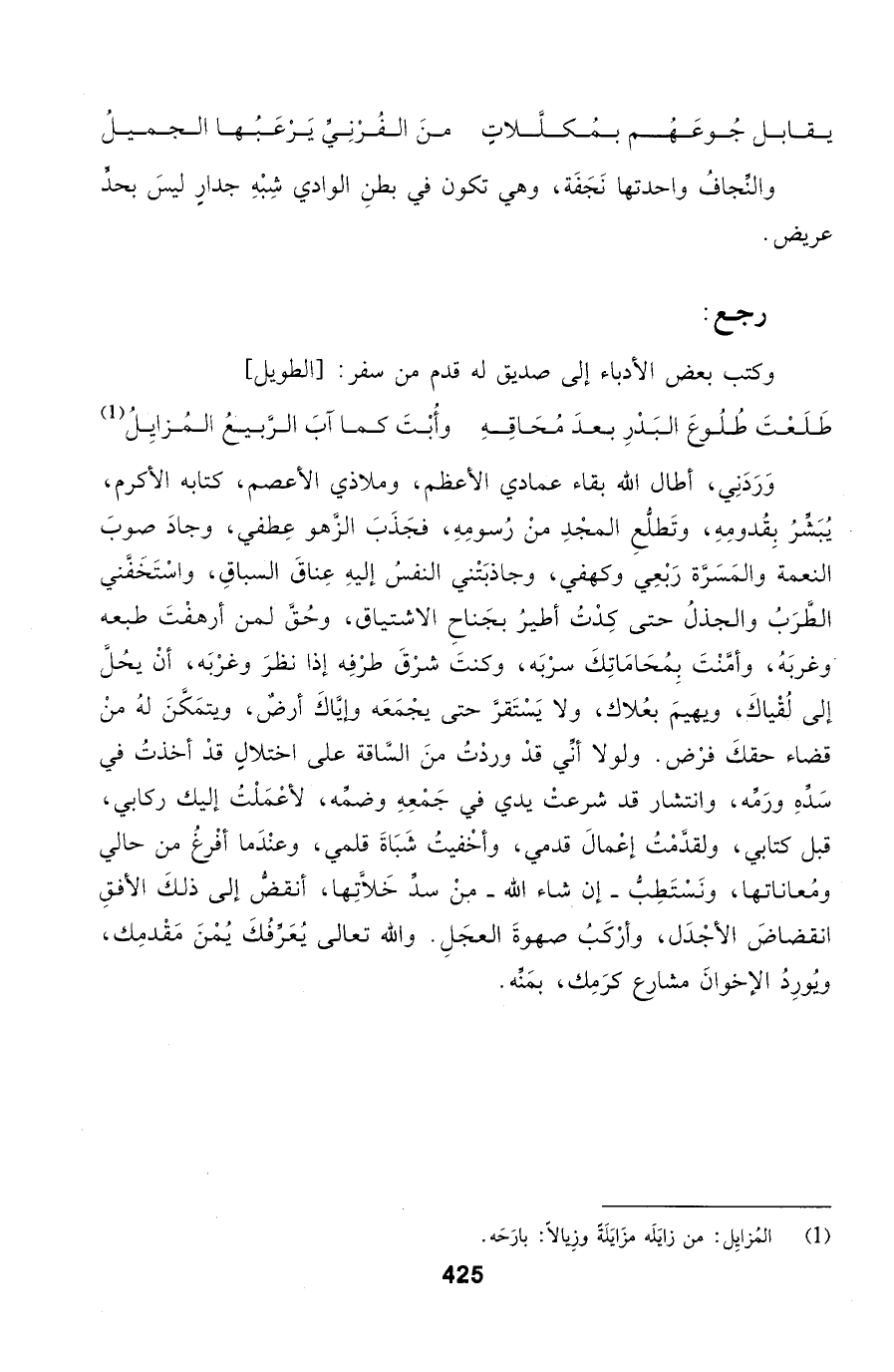 وَرَدَنِي، أطال الله بقاء عمادي الأعظم، وملاذي الأعصم، كتابه الأكرم، يُبَشِّرُ بِقُدومِهِ، وتَطلُّعِ المجْدِ