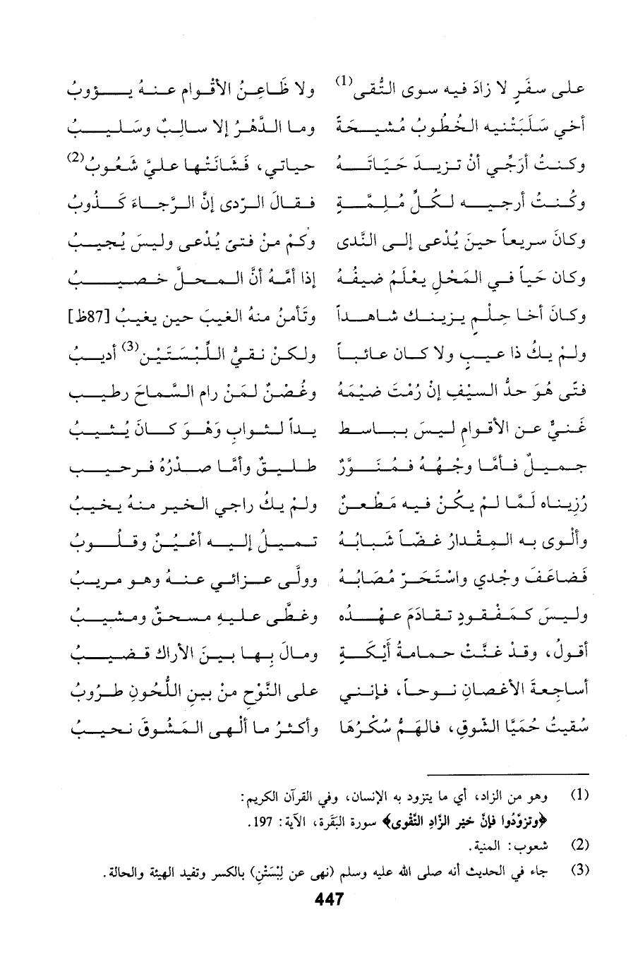 على سفَرٍ لا زادَ فيه سوى التُّقى ... ولا ظَاعِنُ الأقْوام عنهُ يؤوبُ