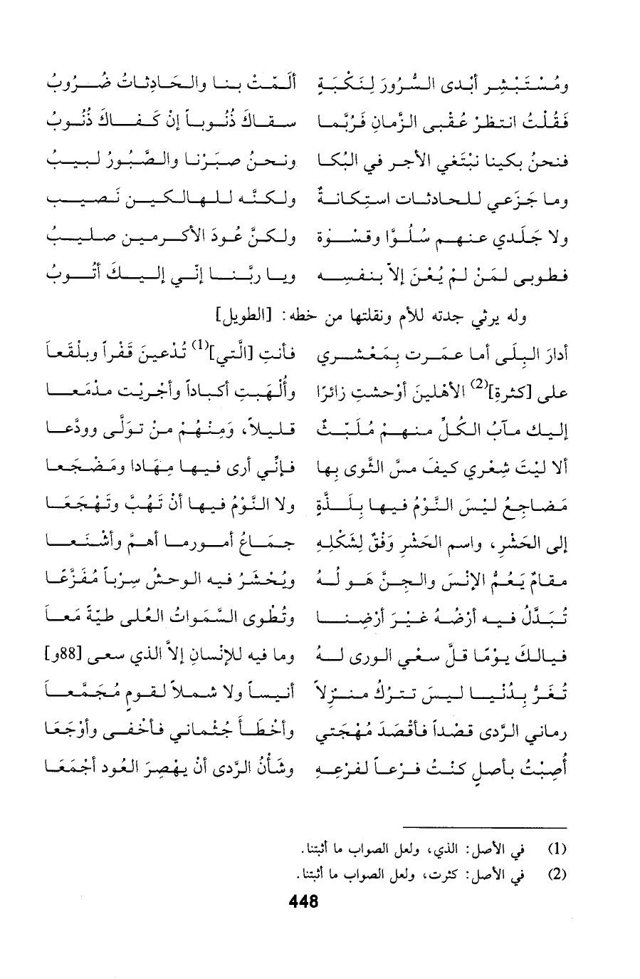 فنحنُ بكينا نبْتَغي الأجر في البُكا ... ونحنُ صبَرْنا والصَّبُورُ لبيبُ