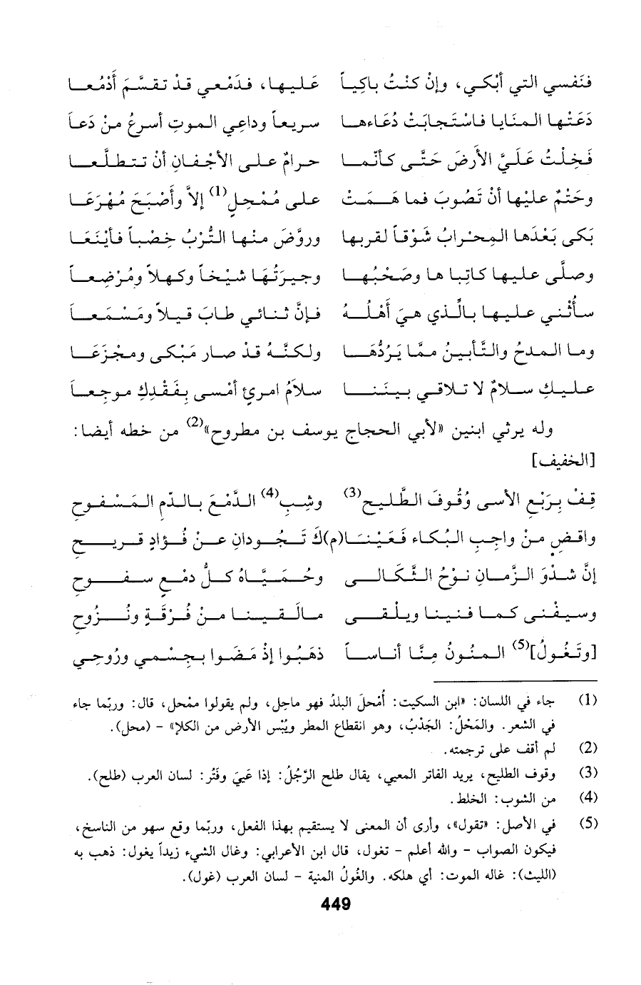 إنَّ شدْوَ الزَّمانِ نوْحُ الثَّكَالى ... وحُمَيَّاهُ كلُّ دمْعٍ سفوحِ