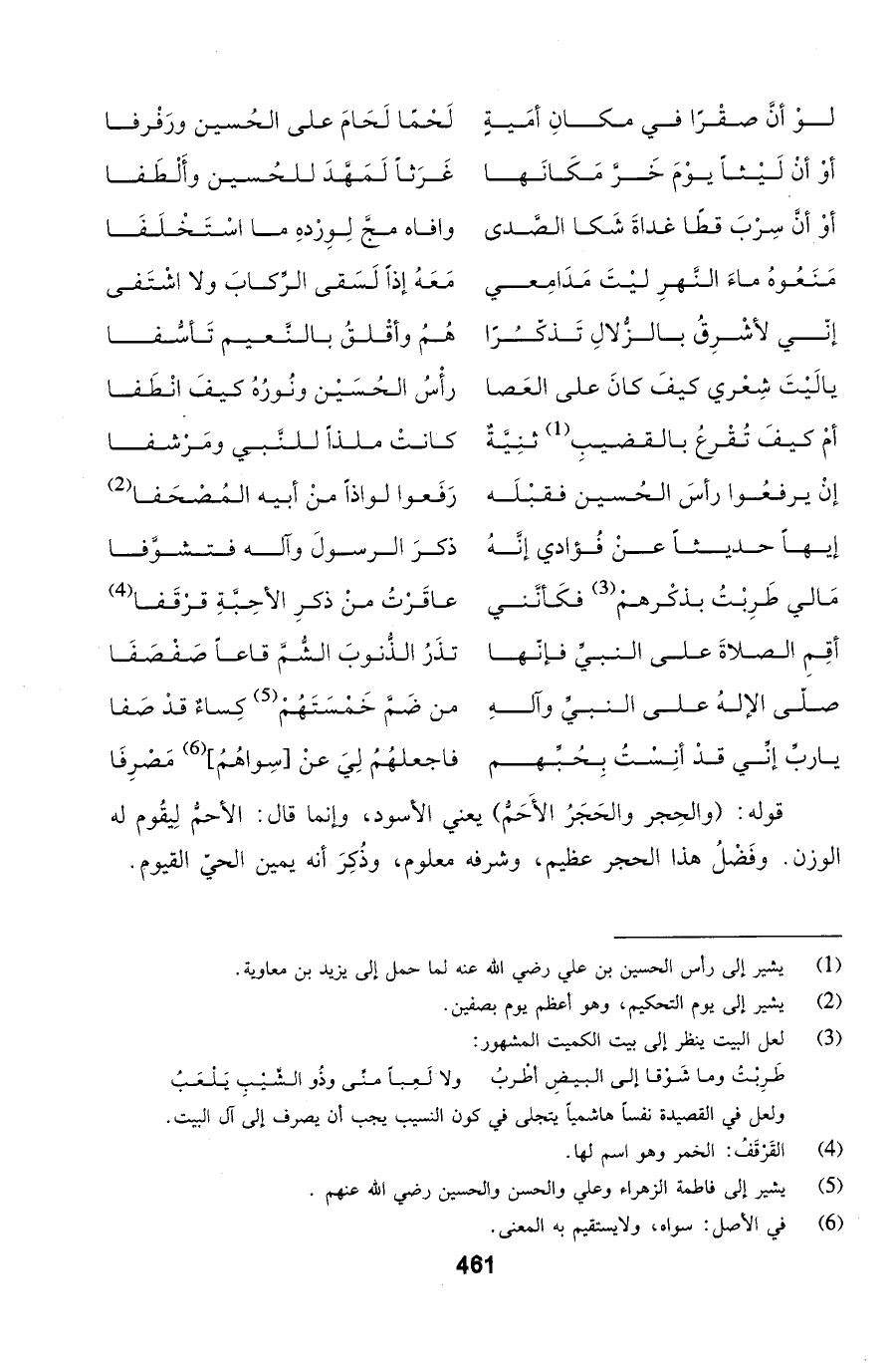 يا لَيْتَ شِعْري كيفَ كانَ على العَصا ... رأْسُ الحُسَيْن ونُورُهُ كيفَ انْطَفا