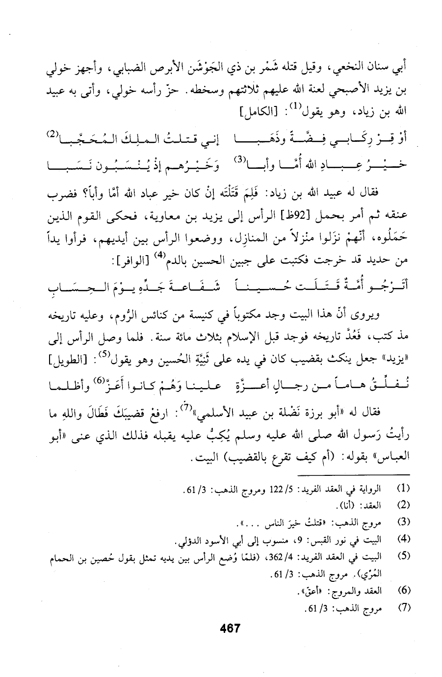 فوجد قبل الإسلام بثلاث مائة سنة. فلما وصل الرأس إلى يزيد جعل ينكث بقضيب كان في يده على