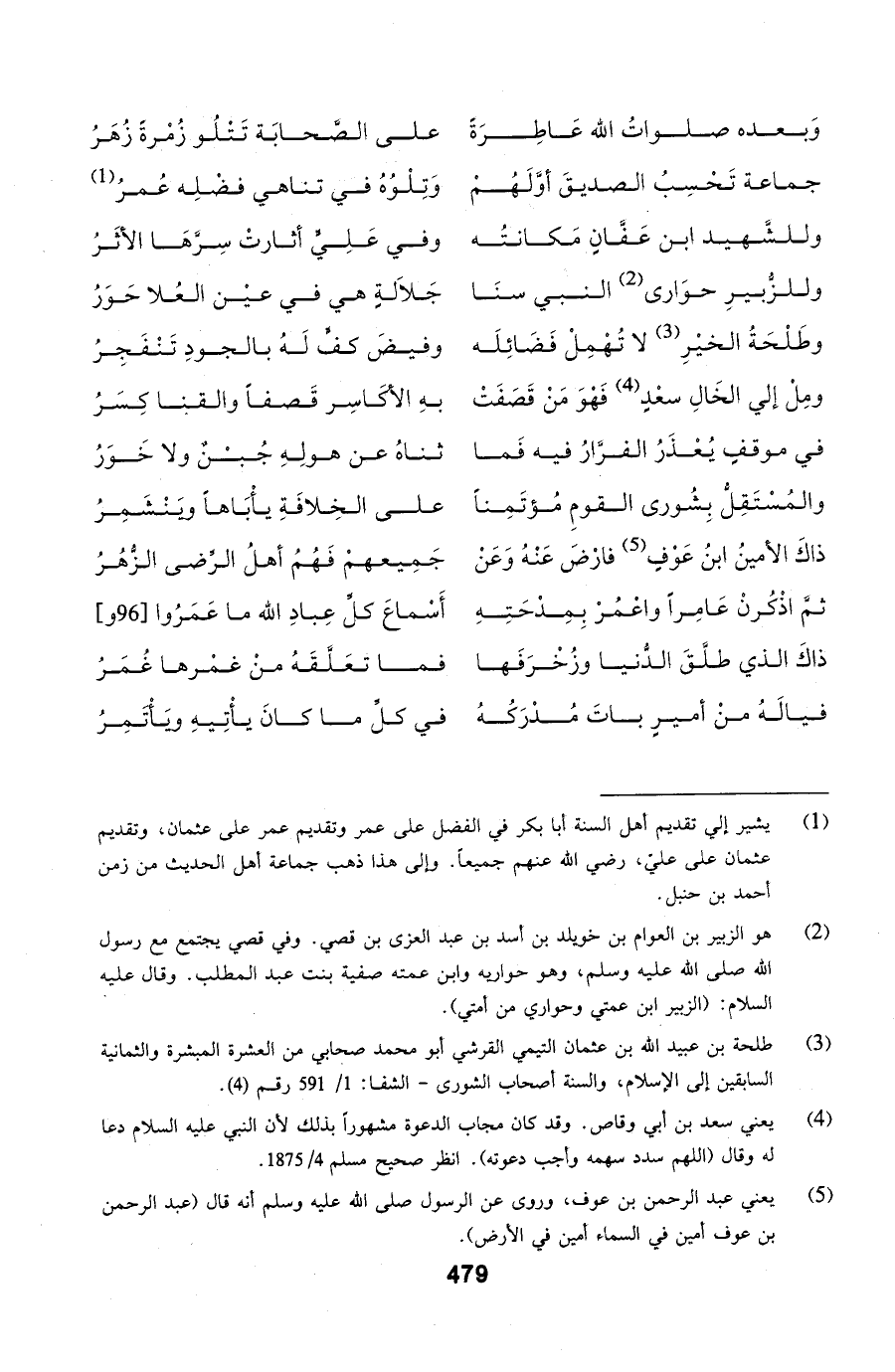 جماعة تَحْسِبُ الصديقَ أوَّلَهُمْ ... وَتِلْوُهُ في تناهي فضْلِه عُمرُ