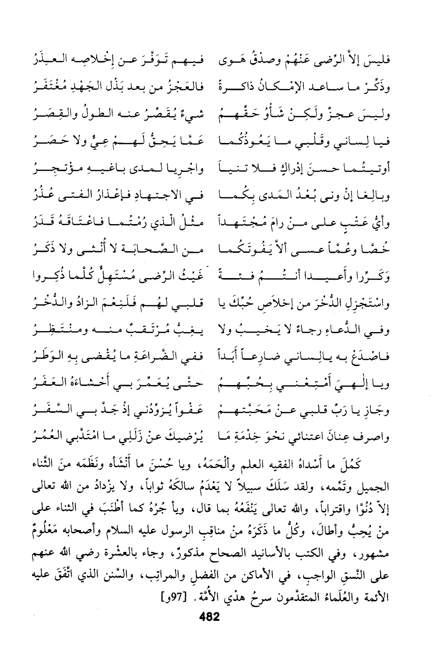 فليسَ إلاَّ الرِّضى عَنْهُمْ وصدْقُ هَوى ... فيهم تَوَفَّرَ عن إِخْلاصِه العِذَرُ
