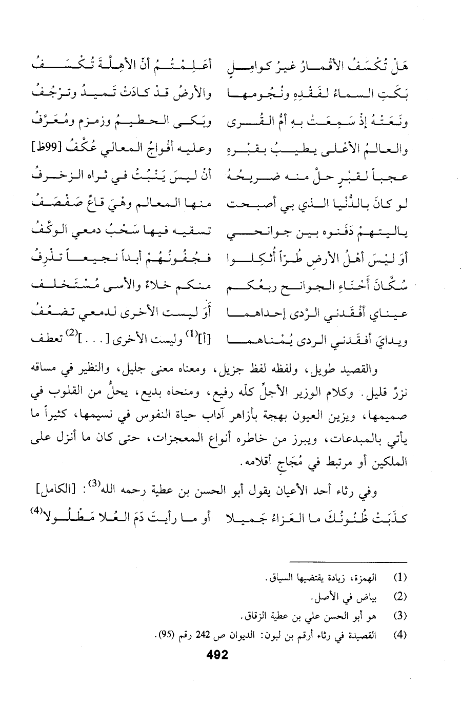 هَلْ تُكْسَفُ الأقْمارُ غيرُ كوامِلٍ ... أعَلِمْتُمُ أنّ الأهِلَّةَ تُكْسَفُ