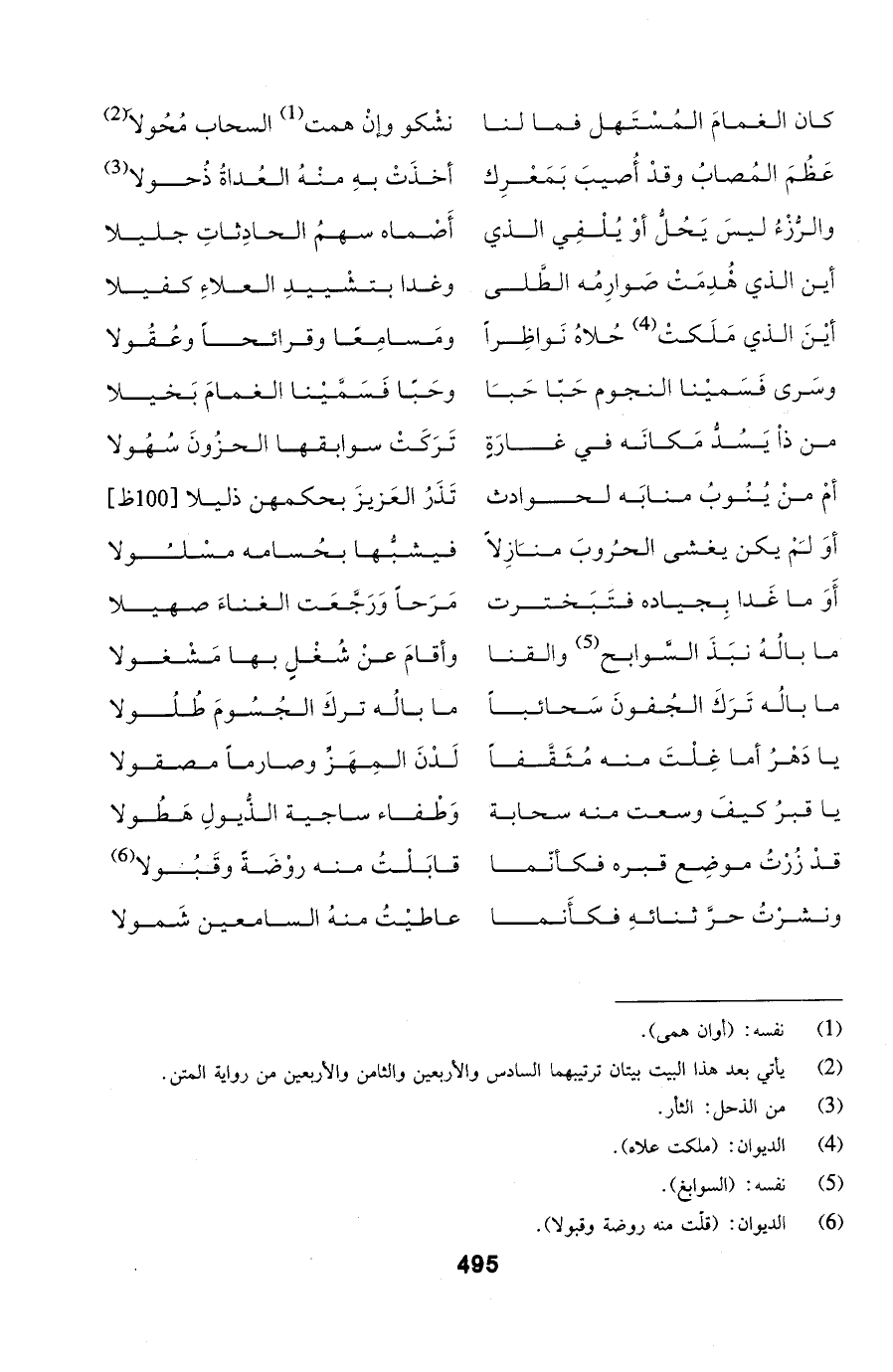 كان الغمامَ المُسْتَهل فما لنا ... نشْكو وإنْ همت السحاب مُحُولاَ