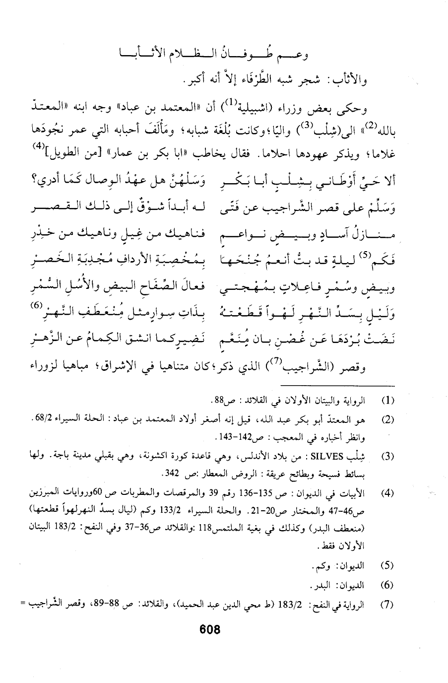 بُلْغَة شبابه؛ ومَأْلَفَ أحبابه التي عمر نجُودَها غلاما؛ ويذكر عهودها احلاما. فقال يخاطب ابا بكر بن