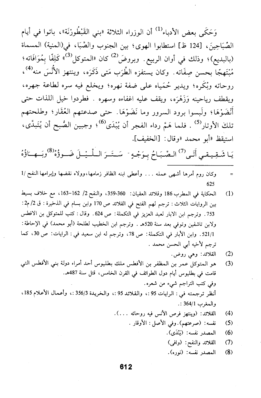 كَلِفاً بِمُوَافَاته؛ مُبْتَهجاً بحسن صِفَاته. وكان يستفزه الطَّرَب مَتى ذَكَرَه، وينتهز الأُنْسَ منه، روحاته