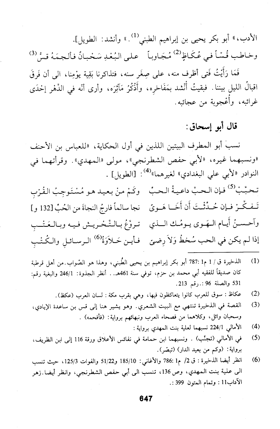 الأدب، أبو بكر يحيى بن إبراهيم الطبني. وأنشد: