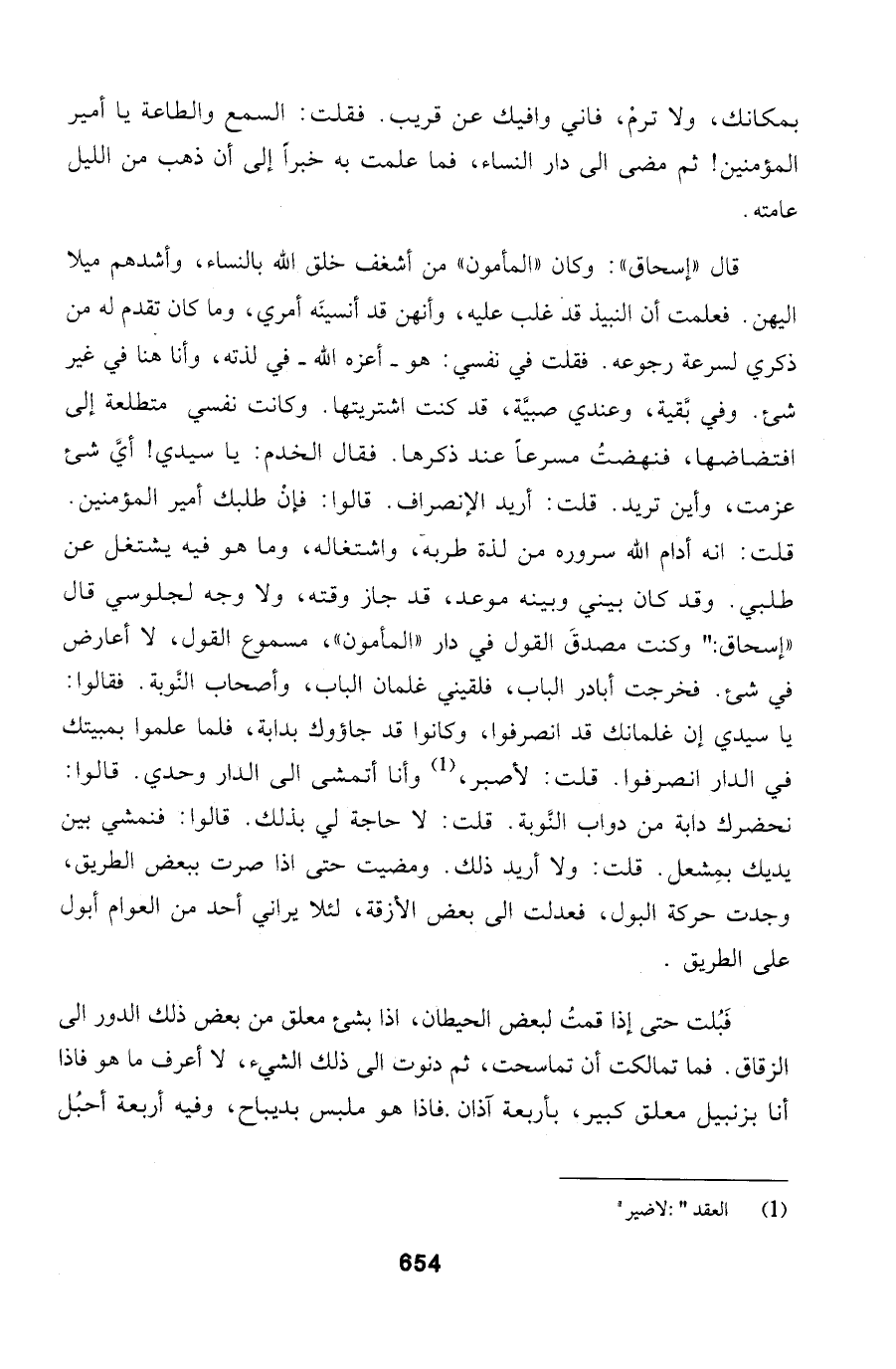 وأين تريد. قلت: أريد الإنصراف. قالوا: فإنْ طلبك أمير المؤمنين. قلت: انه أدام الله سروره من لذة