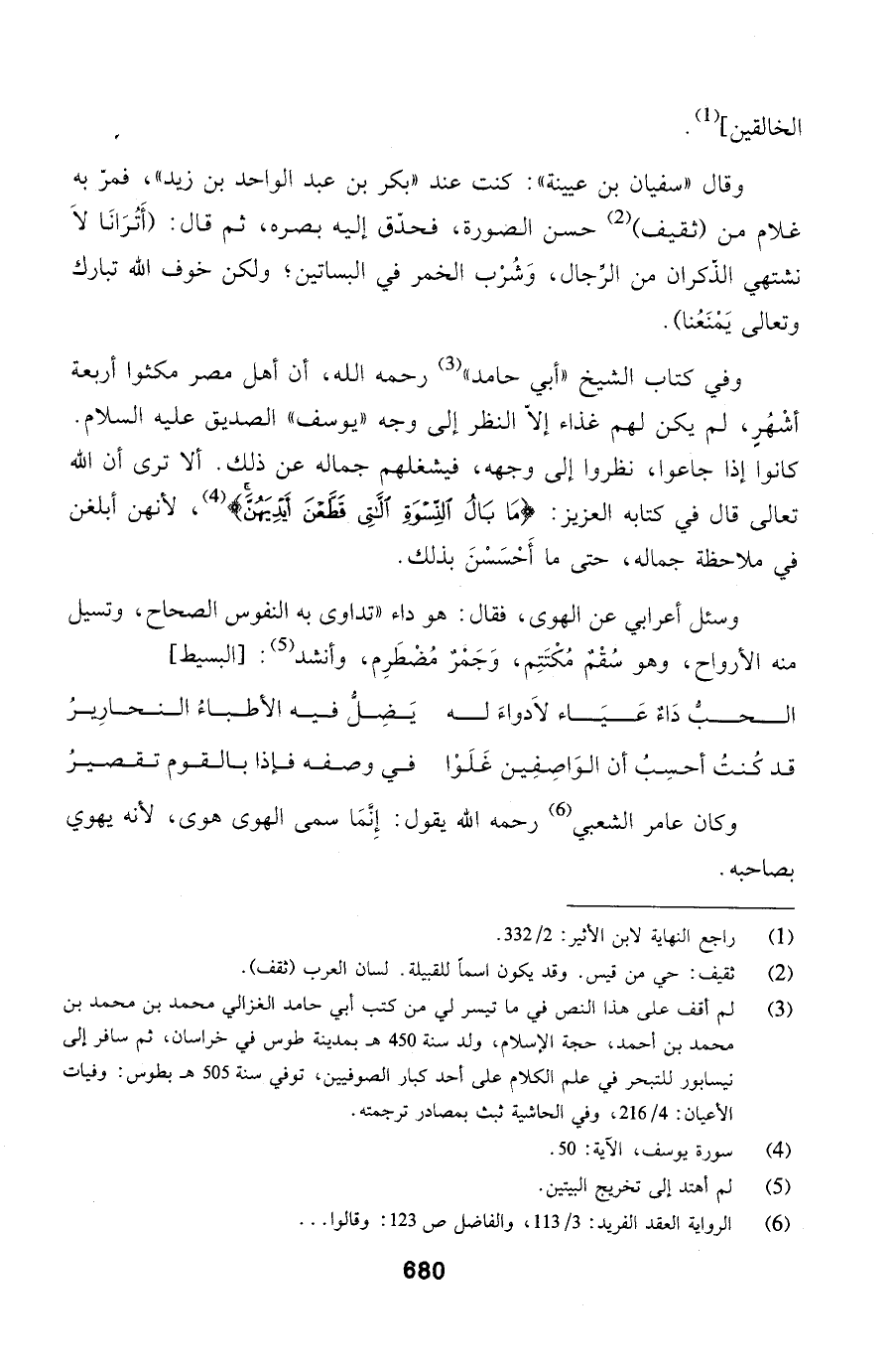 ألا ترى أن الله تعالى قال في كتابه العزيز: (مَا بَالُ النِّسْوَةِ اللَّاتِي قَطَّعْنَ أَيْدِيَهُنَّ)، لأنهن أبلغن في ملاحظة جماله، حتى ما أَحْسَسْنَ
