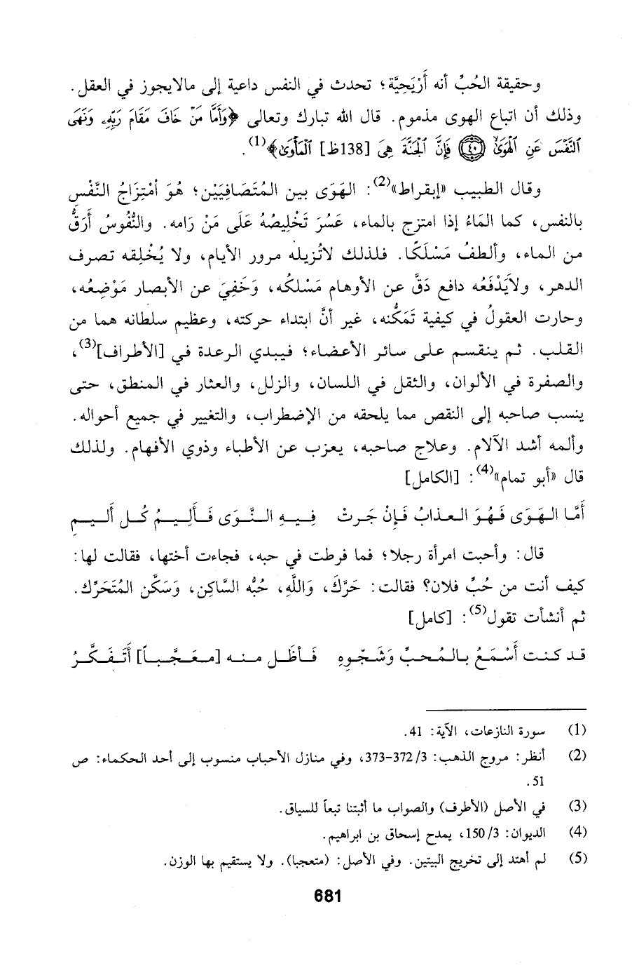 وقال الطبيب إبقراط: الهَوَى بين المُتَصَافِيَيْن؛ هُوَ اْمْتِزَاجُ النَّفْسِ بالنفس، كما المَاءُ إذا امتزج بالماء،