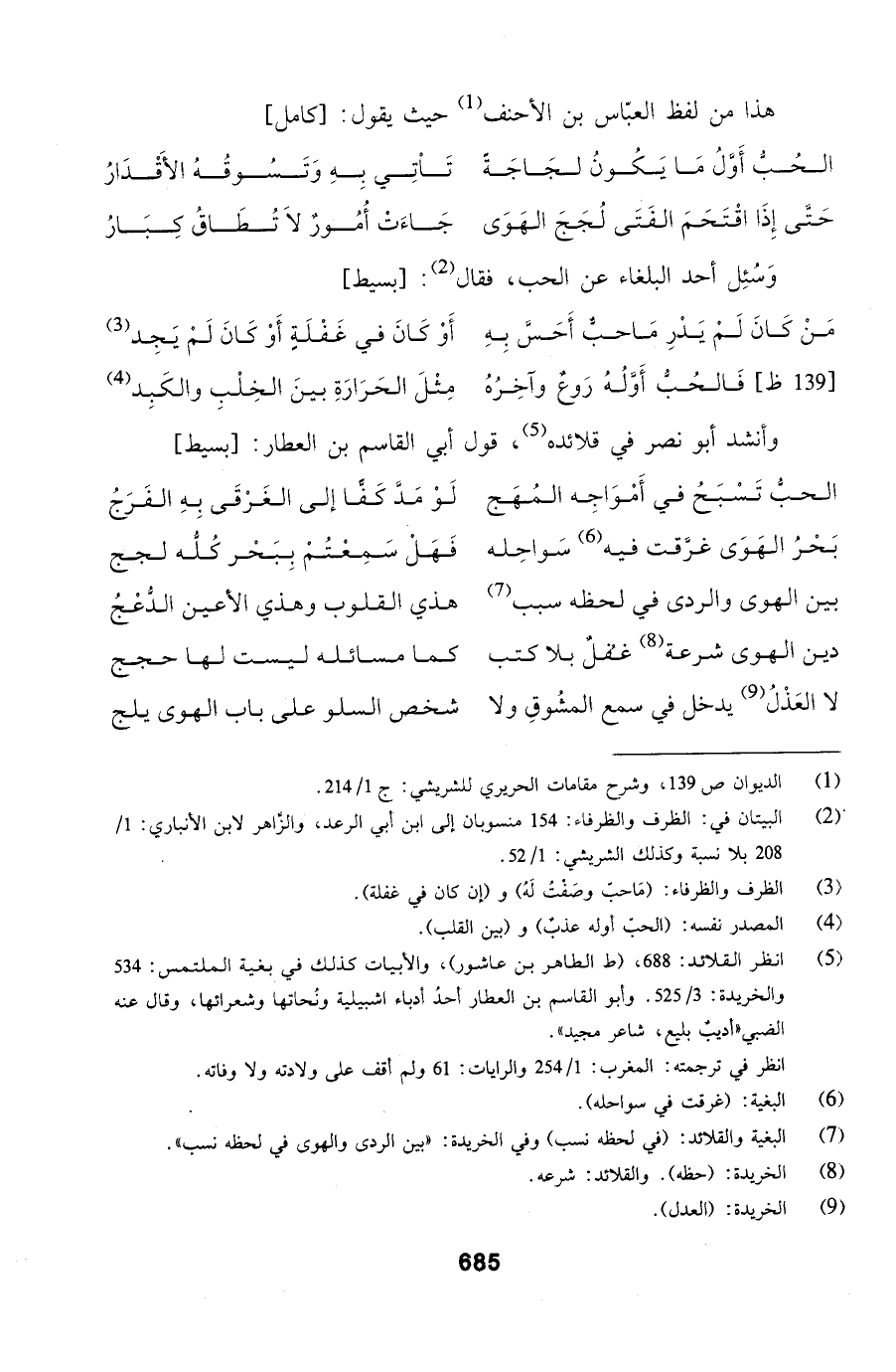 الحبُّ تَسْبَحُ في أَمْوَاجِه المُهَج ... لَوْ مَدَّ كَفّاً إلى الغَرْقَى بِهِ الفَرَجُ